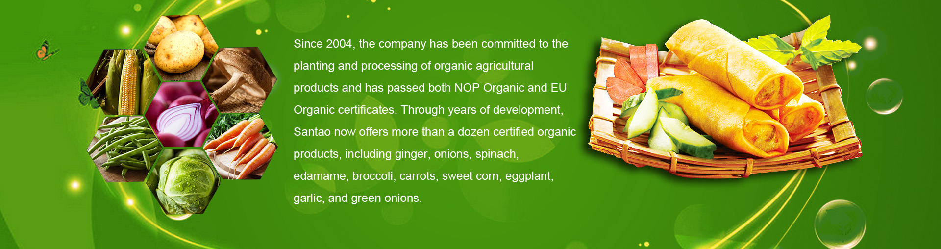 Founded in 2003, Santao Foods is a large integrated food enterprise group engaged in agricultural planting, livestock and poultry farming, food processing, and international trade. Leveraging its unique agricultural geographical advantages, ecological farming environment, highly skilled industrial workforce, and well-established food processing and agricultural operation standards, Santao Foods has, under the leadership of an experienced management team, continuously delivered premium-quality products to markets around the world for over twenty years.Since its establishment, Santao Foods has grown from a single-product agricultural processing enterprise into an internationally recognized supplier of high-quality foods and food ingredients. Supported by a safe and stable agricultural and li 【More
